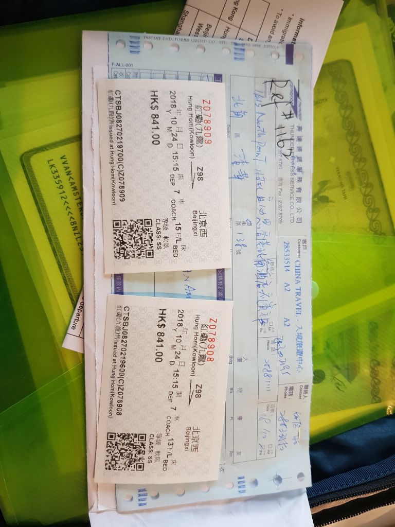 We decided to order the tickets online via a Chinese registered travel agency and have the tickets delivered to the hotel in Hong Kong. It costs extra, but at least one knows their train tickets will be on time delivered to their hotel. Time is of essence on the Trans Siberian railway journey.